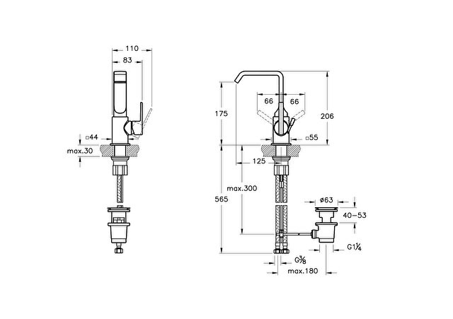 VitrA Basin Mixer_side handle with pop-up_Suit