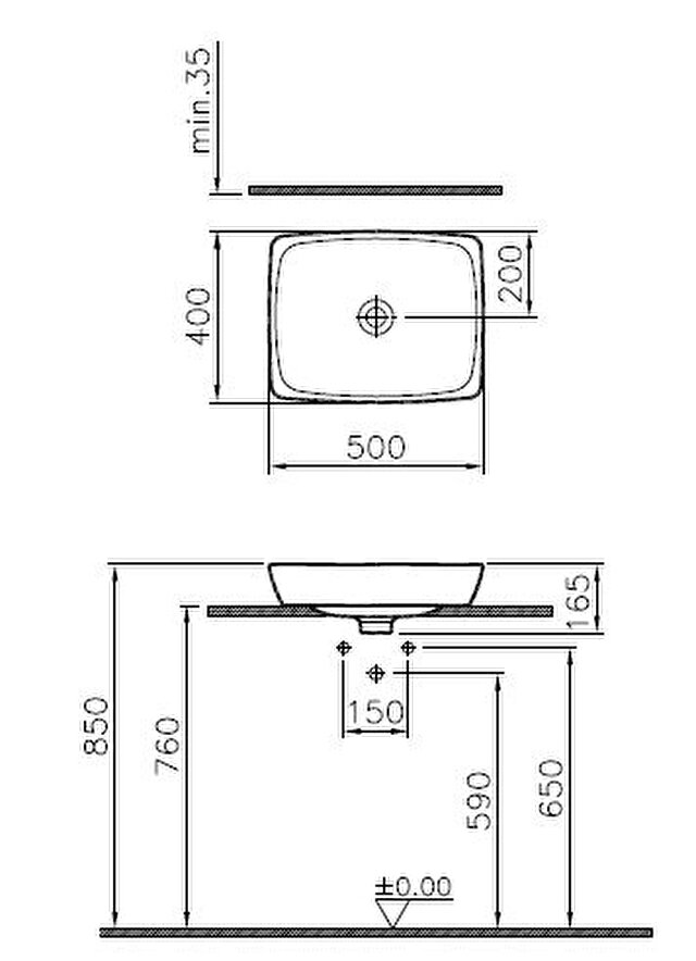 VitrA Metropole Counter Basin 50cm-White