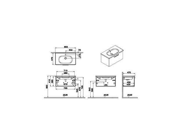 VitrA Root, Vanity unit, 80 cm,one drawer