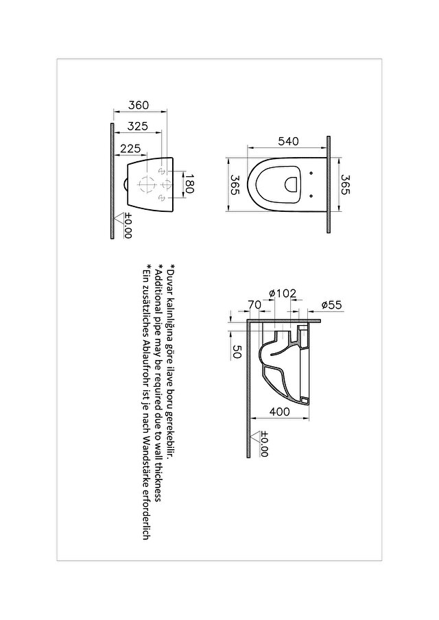 - Bidet pipe access: Without bidet pipe