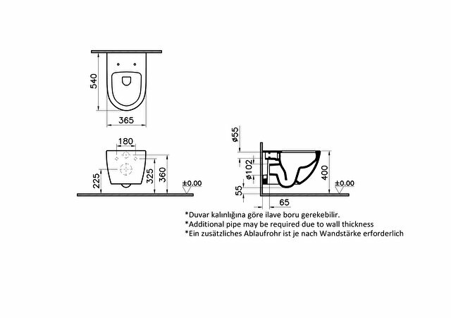 Bidet pipe access: Without bidet pipe