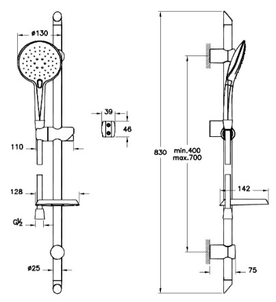 VitrA Shine Round 3F Shower Rail Set, Chrome