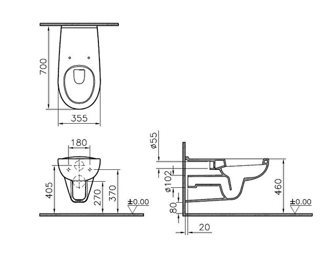 VitrA Integra Square Wall-Hung Wc 54cm-White